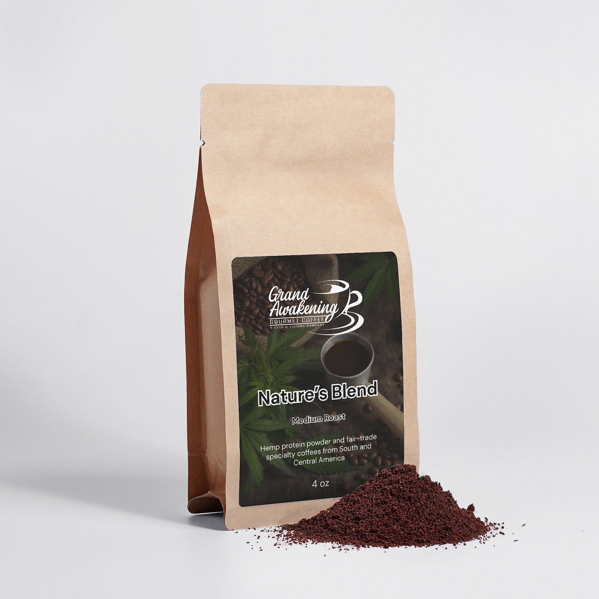 Ingredients: 90% USDA Organic Arabica Coffee + 10% USDA Organic Hemp Protein Powder.